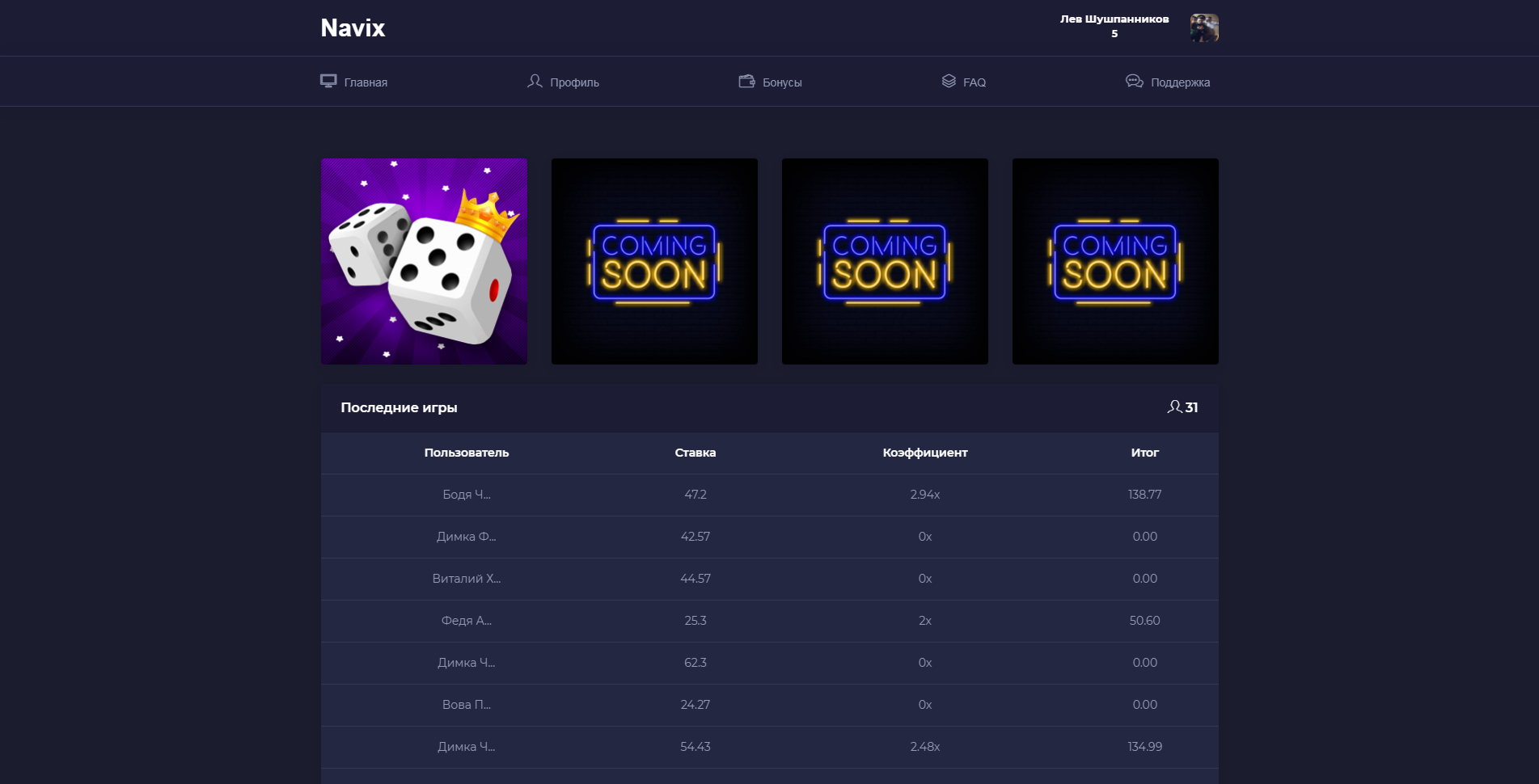 Продам сайт Navix, аналог нвути с новым дизайном, новыми бонусами, фейковой историей игр как у нвути и нормальным фейковым онлайном.