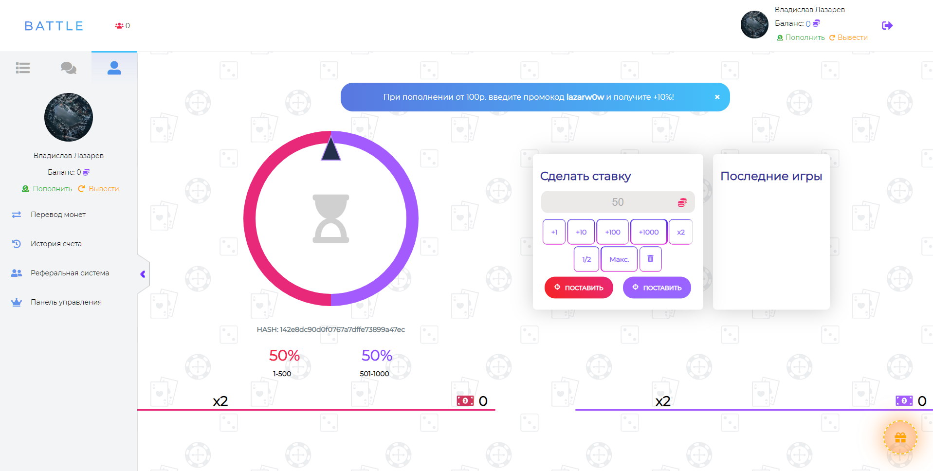 Пополнение через FREE-KASSA, так же есть возможность использовать промокод для +% к пополнению;